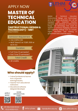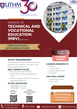 At Faculty of Technical and Vocational Education (FTVE), we foster students to become dynamic, creative, and innovative graduates by integrating essential soft skills into the teaching and learning experience. This unique advantage equips FTVE students to not only compete but also excel in meeting the demands of the current job market. We invite you to join us and embark on this transformative journey today!