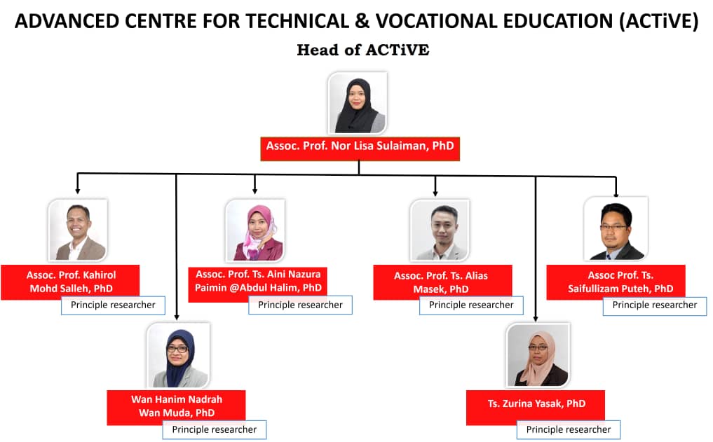 Advanced Centre for Technical and Vocational Education (ACTiVE) is a research centre under the Faculty of Technical and Vocational Education, Universiti Tun Hussein Onn Malaysia which is committed to empowering and initiating research based on ethical, systematic and scientific principles to enhance the quality of Technical and Vocational Education and Training (TVET) at the national and global level.